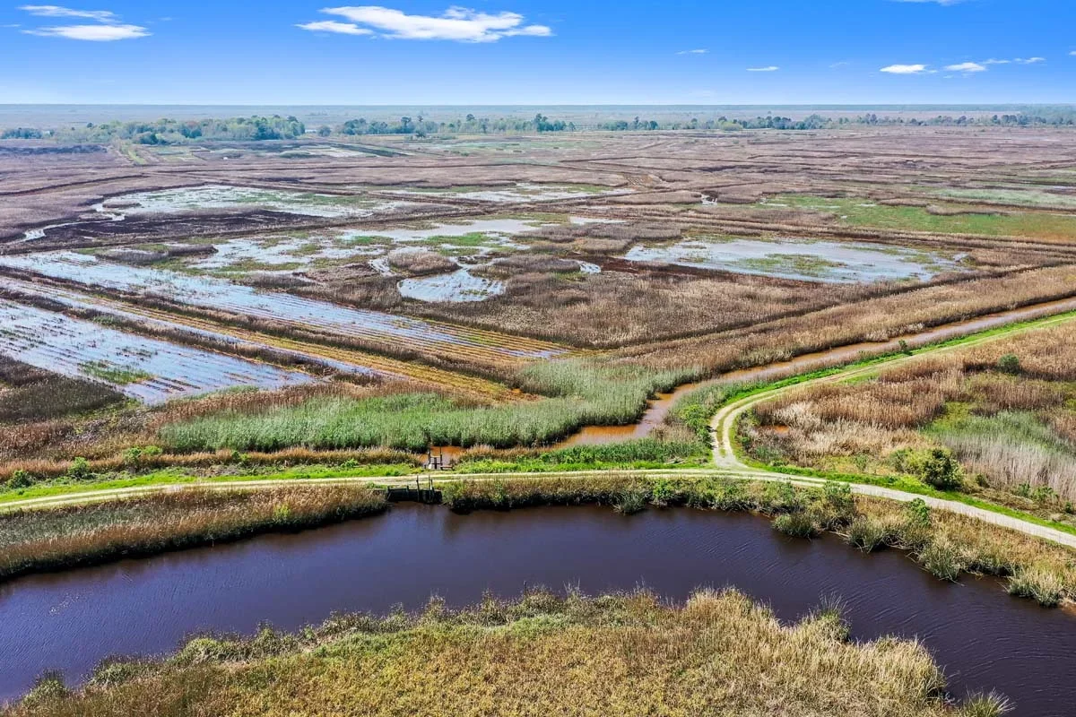 Kinloch Plantation lies in the heart of South Carolina’s Santee Delta, shaped by history, wildlife, and generations of stewardship. Encompassing approximately 5,800 acres, the property reflects the culmination of fourteen historic rice plantations brought together into a single working estate. Today, Kinloch includes roughly 2,400 acres of managed waterfowl impoundments, 2,700 acres of marshlands and islands, and 700 acres of upland fields and woodland. The canals, dikes, and impoundments first constructed for rice cultivation continue to guide water and sustain natural wildlife habitat